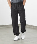 Quick dry microfibre with peached finish. Elasticated waist and drawcord, front pockets – right with zip as worn. Elasticated leg openings, side leg zips at hem, back pocket with Velcro™ fastenings, fully mesh lined. Zip across for decoration. Also available in kids'